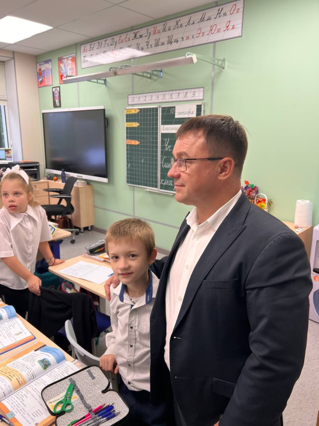 «Директор школы Елена Юранова провела экскурсию по обновлённому после капитального ремонта зданию. Приехал я, конечно, не с пустыми руками. Вместе с заместителем председателя общественного совета при департаменте образования Максимом Какуновым передали ребятам новый спортивный инвентарь — футбольные мячи. Рад, что в школе так любят спорт!» — сказал Алексей Ярусов.