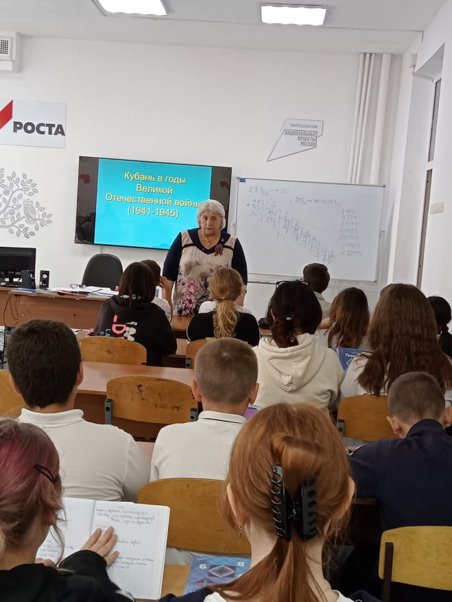 Рассказ сопровождался демонстрацией презентации «Кубань в годы войны».
