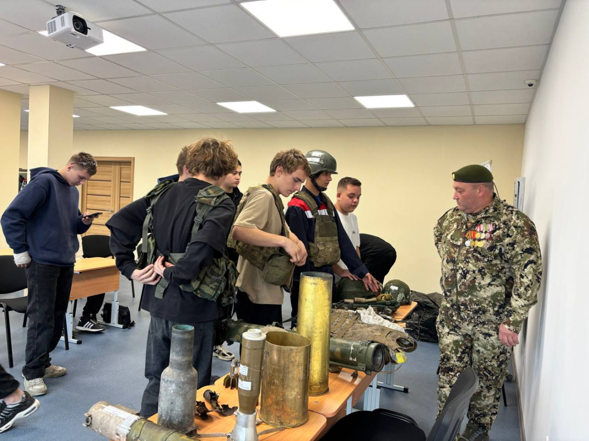 14 октября ветеран Чеченской войны и СВО, руководитель Сысертского центра «БОЕВОГО БРАТСТВА» Антон Зайцев провел для студентов екатеринбургского техникума «Автоматика» урок мужества и продемонстрировал выставку трофеев СВО.