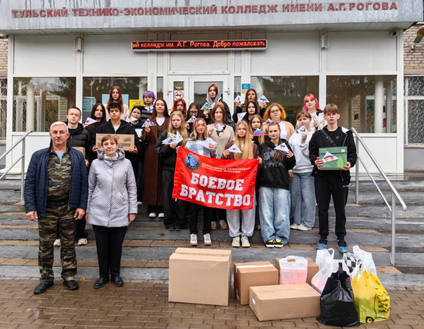 13 октября по инициативе ветеранов Центрального районного отделения «БОЕВОГО БРАТСТВА» Тулы Андрея Кизиева и Владислава Гайнулина студентами Тульского технико-экономического колледжа им. А.Г. Рогова была отправлена в зону СВО очередная партия гуманитарной помощи военнослужащим, выполняющим воинский долг.