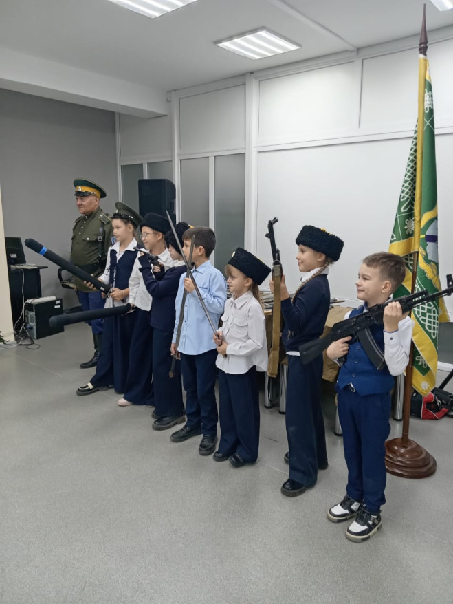 Они рассказали ребятам об освоении Дальнего Востока казаками, охране границ и войнах, в которых те участвовали. Рассказали и об участии современных казаков в СВО, показали небольшую выставку казачьего оружия от времён освоения Амурского края до современности. Ответили на многочисленные вопросы и показали, как воспитывали казачат с помощью казачьих игр.