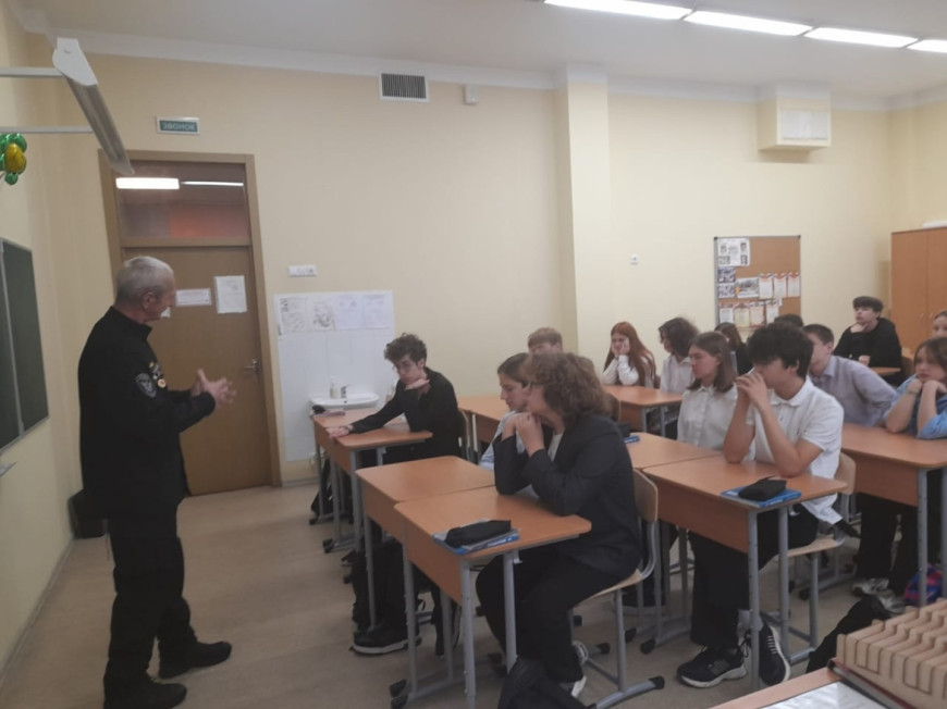 Провёл их для учеников 7-х и 9-х классов ветеран ОМОН (на транспорте) «Балтика», член Токсовского отделения Ленинградского «БОЕВОГО БРАТСТВА» Сергей Краснобаев.