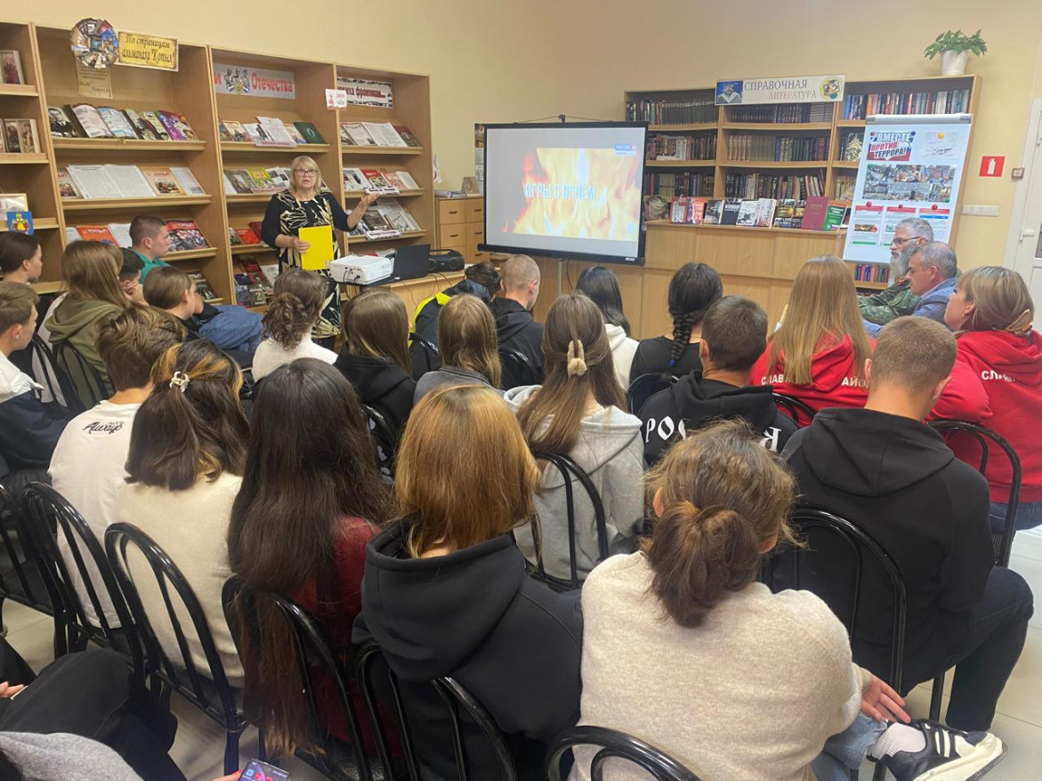 16 октября член Славянского местного отделения «БОЕВОГО БРАТСТВА» имени полковника А.Б. Пантелеева, ветеран боевых действий в зоне СВО Игорь Быковский провёл в Славянской межпоселенческой центральной библиотеке имени Н.Я. Данилевского информационно-правовой час «Вместе против терроризма».