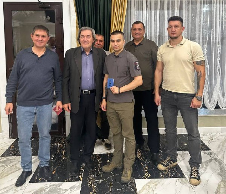 На заседании председатель исполкома Оренбургского регионального отделения Анатолий Успанов вручил участнику СВО Артуру Садыкову членский билет «БОЕВОГО БРАТСТВА» и медаль организации «За ратную доблесть».