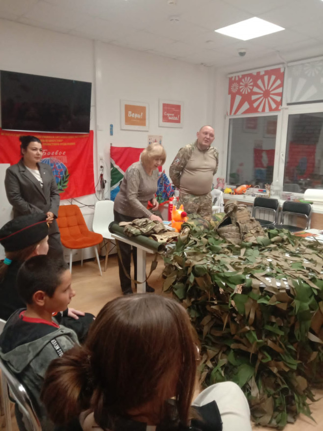Гости привезли с собой учебно-методические пособия и все необходимые для бойцов на фронте предметы, начиная от автомата Калашникова и заканчивая сухими душами. После урока угостили детей сладостями.