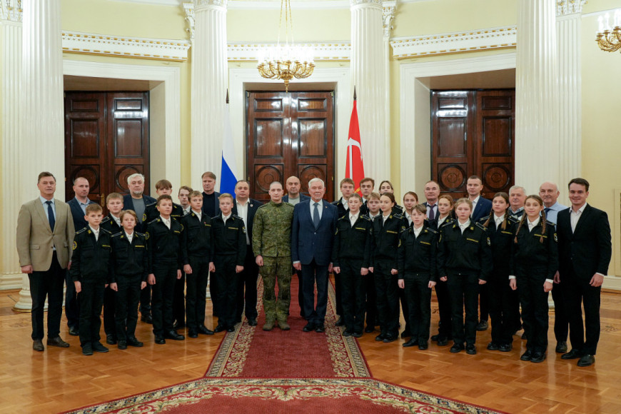 “В Санкт-Петербурге около 9 тысяч детей учатся в кадетских классах. Также в нашем городе самая большая концентрация нахимовских, суворовских, кадетских корпусов, ведомственных учреждений довузовской подготовки”, – выступил перед участниками с патриотической речью Константин Чебыкин и представил гостям главного героя встречи.