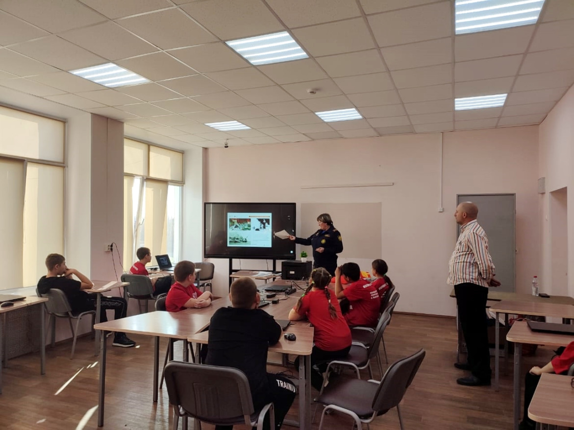 Организатором выступил руководитель «Волонтёрской роты» Сапоговской школы Денис Цыгикало, который организовал встречу с инструктором республиканского отделения Всероссийского добровольного пожарного общества Ольгой Данцовой.