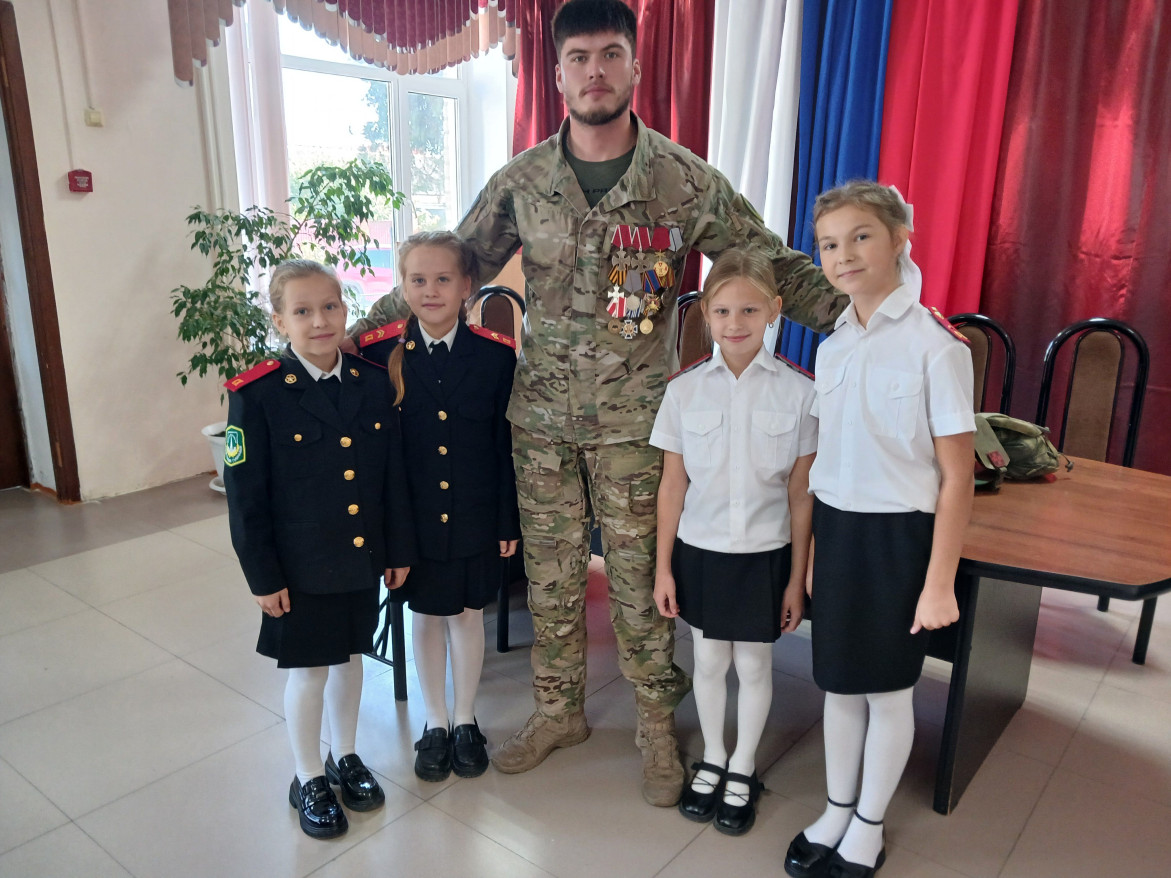 17 октября в школе №16 Славянска-на-Кубани ветераном боевых действий, вооруженных сил Российской Федерации, членом местного отделения «БОЕВОГО БРАТСТВА» Олегом Замурьевым был организован урок мужества для 30 учеников 11-го кадетского класса с участником Специальной военной операции Кириллом К., позывной «Куба».