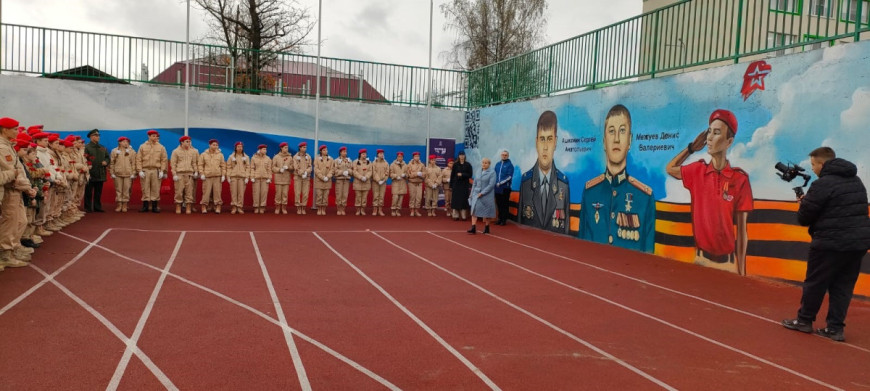 17 октября на стадионе Алабинской средней школы Наро-Фоминского городского округа Московской области открыли мурал в честь Героев России С. Ашихмина и Д. Межуева, чьи имена носит эта школа.