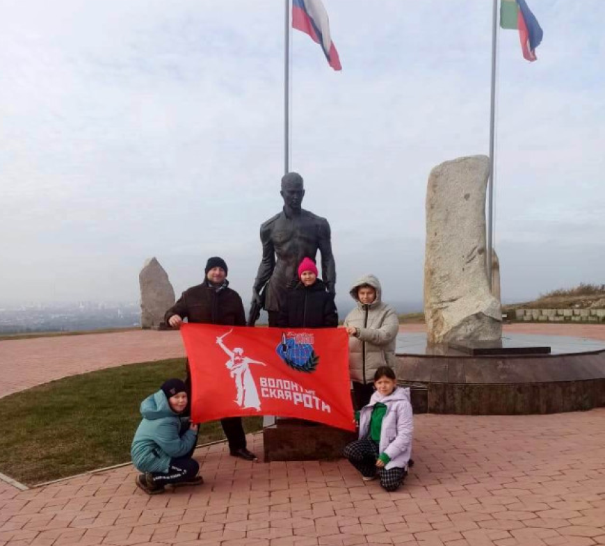 Этот памятник посвящён воинам, павшим в боях за Родину. Экскурсию провёл руководитель местной «Волонтёрской роты» Денис Цыгикало.