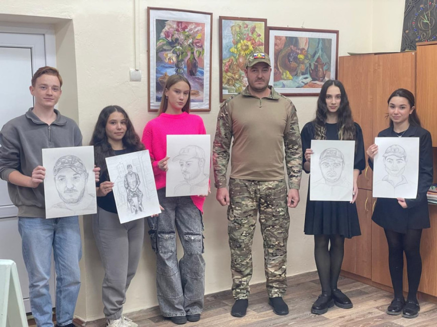 Юные художники, вооружившись карандашами, тщательно переносили на бумагу черты его лица. Во время написания портрета с гостем общалась Светланы Семко. Ветеран рассказывал о боевых товарищах, о долге перед Родиной и о важности сохранения мира. Художественные работы, выбранные героем акции, примут участие в итоговой выставке.