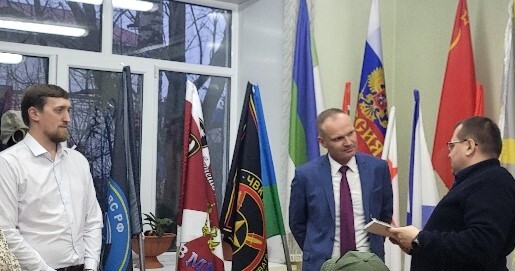 Церемония передачи медалей состоялась с участием руководителя управления И. Екимова и сотрудника Г. Долгова.