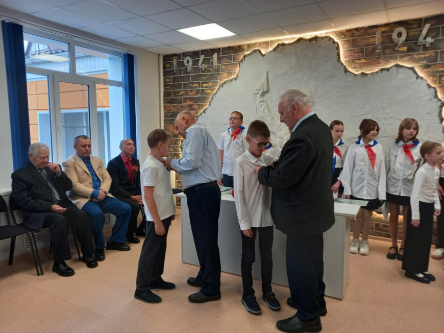 Затем в школьном музее боевой славы состоялся прием учащихся 4А класса в ряды юных карбышевцев. Члены клуба «Искатель» ознакомили четвероклассников с законами юных карбышевцев, а почетные гости прикололи карбышевские значки и дали наказы ребятам.