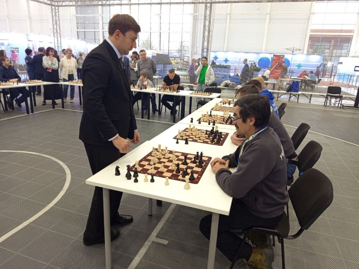 31 октября в рамках чемпионата “Абелимикс” Александр Николаев и Павел Попов присоединились к сеансу одновременной игры с шахматным гроссмейстером Сергеем Карякиным. В мероприятии участвовали около тридцати человек.