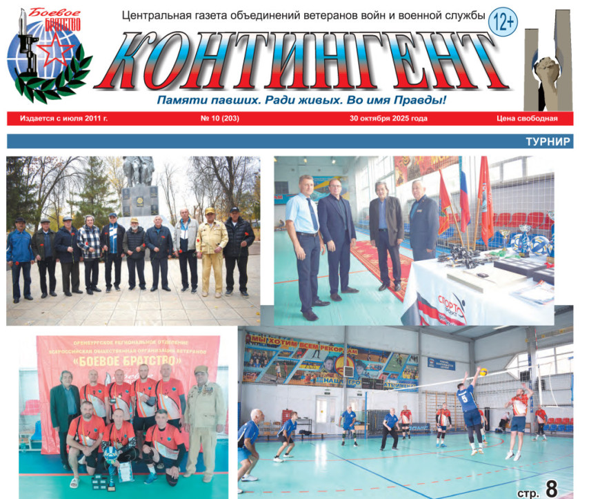29 октября в Оренбурге тиражом в 5083 экземпляра вышел октябрьский номер газеты «Контингент», учредителем которой является Оренбургское региональное «БОЕВОЕ БРАТСТВО».