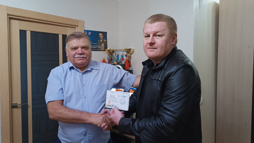 30 октября в Щелкове руководитель Щелковского отделения «БОЕВОГО БРАТСТВА» Анатолий Тананаев вручил руководителю местного отделения ассоциации участников СВО, ветерану боевых действий Евгению Бородуле членский билет «БОЕВОГО БРАТСТВА».