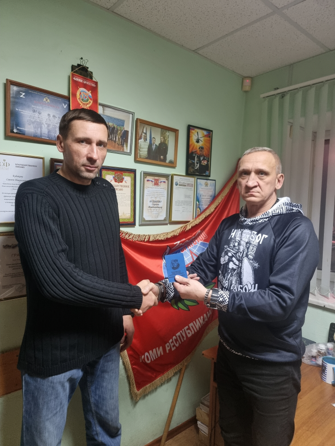 Удостоверение вручил руководитель республиканского отделения Сергей Будяков. Он отметил, что в “БОЕВОМ БРАТСТВЕ” Коми прием новых членов ведется на постоянной основе.