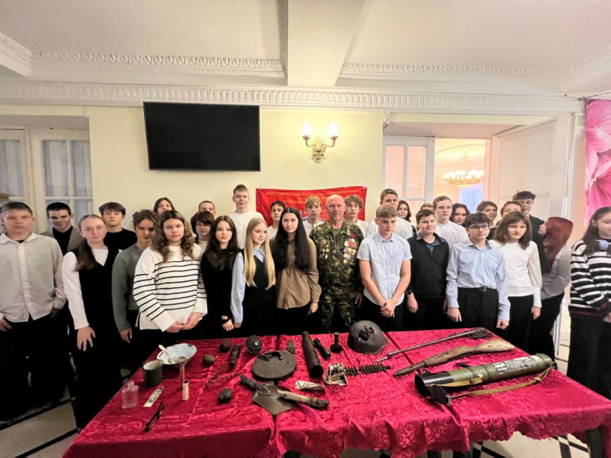 Владимир Макаров рассказал ученикам об организации «БОЕВОЕ БРАТСТВО» и организовал выставку находок поискового отряда, рассказал о тонкостях и важности изучения истории, увековечивания памяти героев войн.