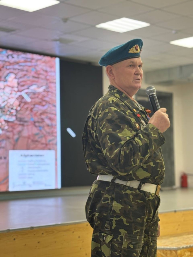 На мероприятии присутствовал член Чувашского отделения «БОЕВОГО БРАТСТВА» Павел Тютин, который выступил с патриотической речью перед школьниками, рассказал о службе и войне в Афганистане.