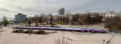 4 ноября на Советской площади Воронежа активисты «Волонтерской роты «БОЕВОГО БРАТСТВА» вместе с «Волонтерами победы», Молодежкой народного фронта, молодогвардейцами, студентами, общественниками и депутатом Государственной Думы Евгением Ревенко развернули 100-метровый флаг России.