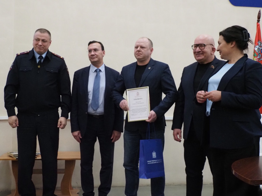 По завершении совещания в торжественной обстановке руководителю Лобненского отделения «БОЕВОГО БРАТСТВА», кавалеру ордена Мужества, участнику боевых действий на Северном Кавказе Алексею Мочалову была вручена грамота от общественной палаты Московской области.