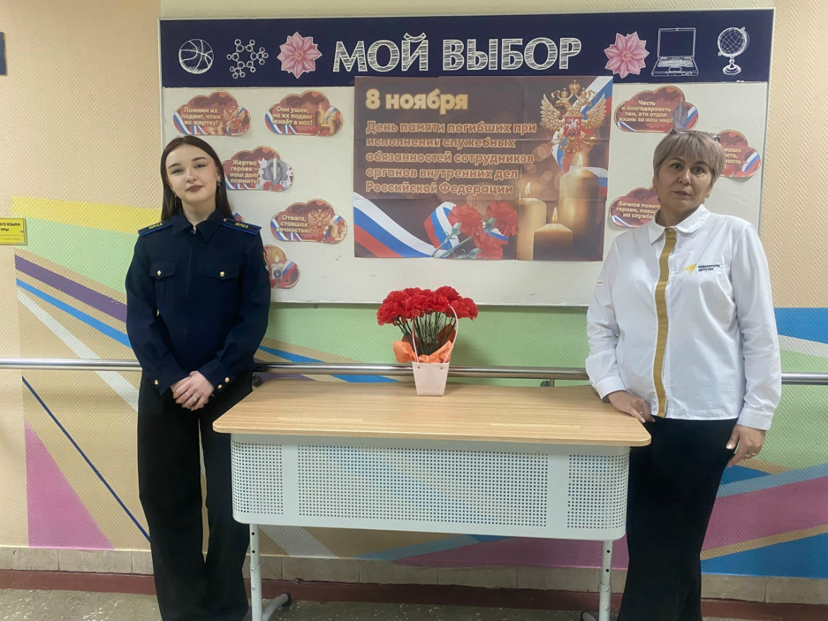 8 ноября в сургутской школе № 27 состоялся урок мужества «Солдаты Отечества», посвящённый памяти погибших при исполнении служебных обязанностей сотрудников органов внутренних дел РФ.