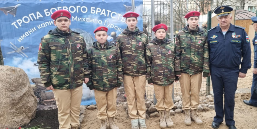 Под гимн России открыли памятную доску на закладном камне и подняли флаги страны, «БОЕВОГО БРАТСТВА» и ДОСААФ. Настоятель храма Александра Невского освятил закладной камень и маршрут. После церемонии школьники и юнармейцы прошли препятствия тропы.