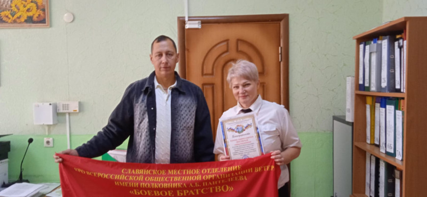 17 ноября член Славянского отделения «БОЕВОГО БРАТСТВА» имени полковника А.Б. Пантелеева, ветеран СВО Евгений Лесников вручил благодарственное письмо за подписью руководителя отделения Александра Казуба директору школы № 28 станицы Анастасиевской Марине Рябцевой.