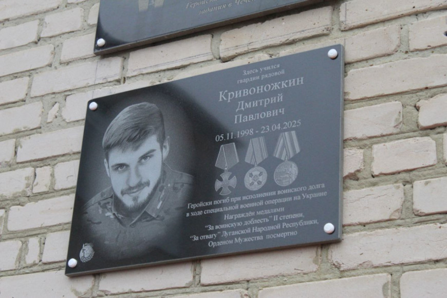 10 ноября на здании Многопрофильного лицея села Малая Сердоба Пензенской области открыли мемориальную доску Дмитрию Кривоножкину, изготовленную Пензенским региональным отделением “БОЕВОГО БРАТСТВА”.