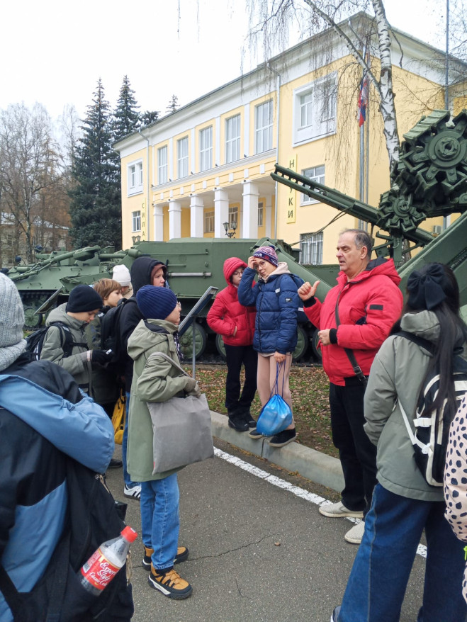 Ветеран показал школьникам действующие и опытные образцы инженерной техники, рассказал как она работает. Рассказал ребятам о героях инженерных войск, участвовавших в боевых действиях в Афганистане и в Специальной военной операции, об истории становления возрожденной Военно-инженерной академии.