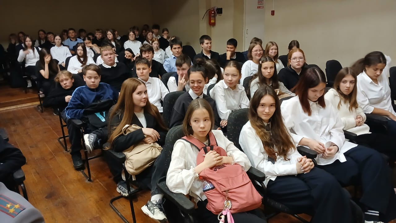 Перед 130 школьниками выступили члены Удмуртскоого «БОЕВОГО БРАТСТВА» — ветераны МВД Фердинат Идрисов, Валентин Афанасьев, Ануар Шарипов и ветеран СВО Николай Агафонов.