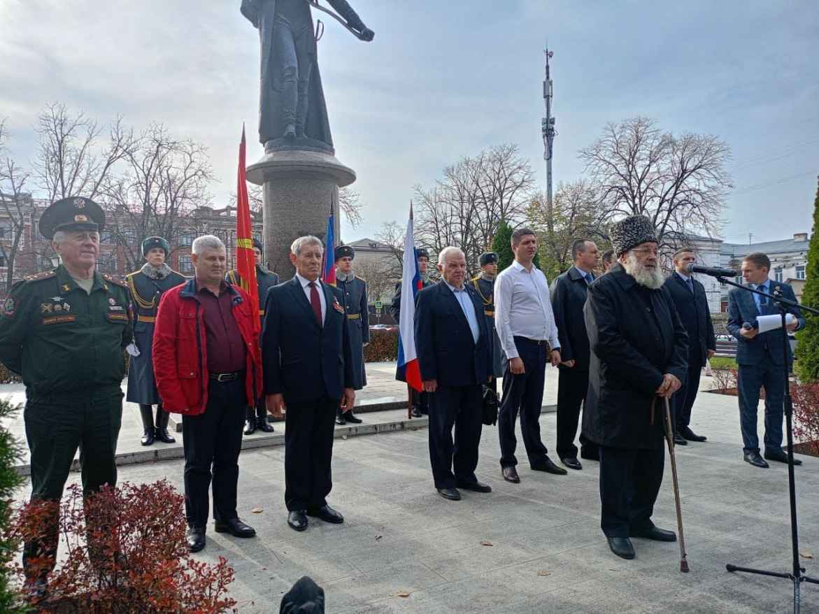 Под звуки военных маршей военнослужащие роты почётного караула внесли к памятнику государственный флаг Российской Федерации, знамёна Вооружённых сил и сухопутных войск России. После исполнения государственного гимна Российской Федерации и гимна Краснодарского края торжественный митинг открыл первый атаман Кубанского казачьего войска, Герой труда Кубани Владимир Громов.