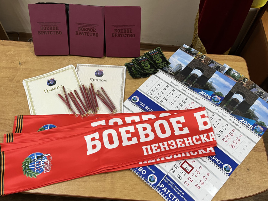 21 ноября Пензенское региональное отделение «БОЕВОГО БРАТСТВА» изготовило продукцию с символикой организации — блокноты, настенные календари, дипломы, грамоты, ручки, шевроны, шарфы, спортивные бутылки для воды - всего более 2000 единиц.