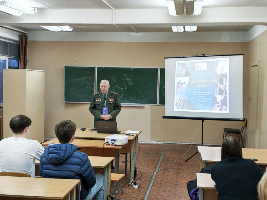 Сергей Барков провел для молодых людей лекцию «Родина помнит своих героев» и ответил на все вопросы, возникшие у студентов. На встрече присутствовали 25 студентов факультета.
