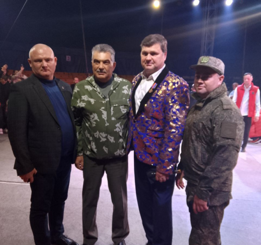 Руководитель Адыгейского «БОЕВОГО БРАТСТВА» Алексей Харитонов и ветераны Анатолий Назаров и Владимир Стасев вручили дирекции цирка благодарственные письма от командиров воинских частей Майкопского гарнизона. Также они наградили памятными медалями «80 лет Победы» директора цирка и трех артистов, особенно полюбившихся зрителям.