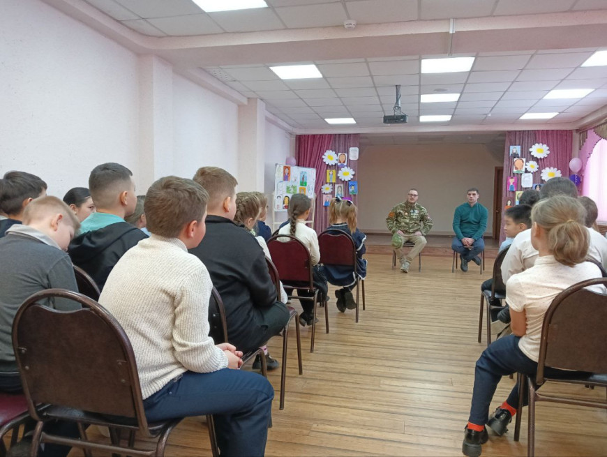 27 ноября в школе №26 в Петропавловске-Камчатском ветераны СВО из Камчатского краевого отделения «БОЕВОГО БРАТСТВА» Ярослав Персияненко и Денис Панков провели урок мужества для учеников третьих и четвёртых классов.