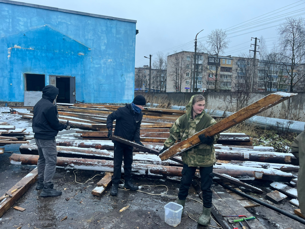 Активисты «БОЕВОГО БРАТСТВА» рассказали учащимся о важности волонтёрской работы, её целях и задачах. Вся работа по подготовке пиломатериалов проходила на улице, поэтому волонтёры приготовили горячий чай, чтобы согреться и пообщаться в дружеской обстановке.