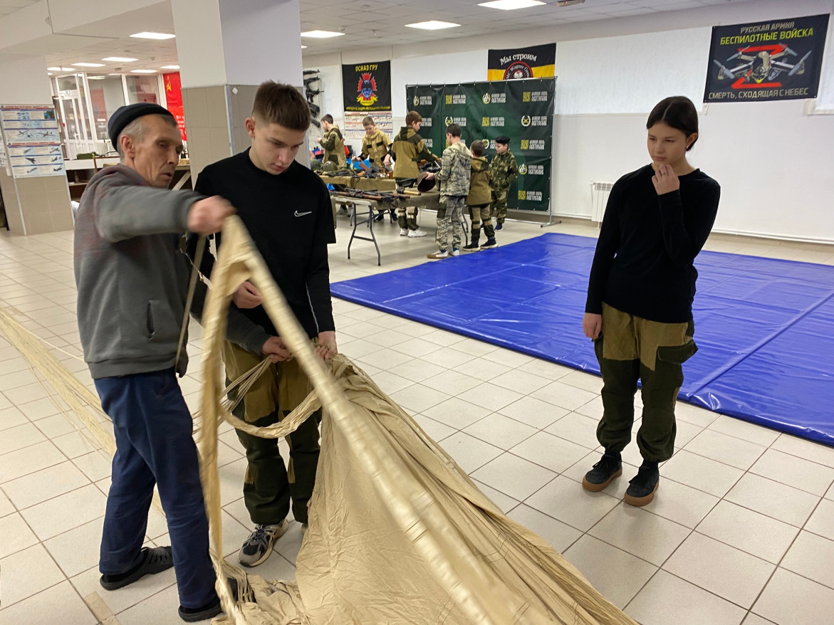 Воспитанники укладывали парашюты, занимались строевой подготовкой и изучали тактико-технические характеристики советского и российского вооружения под руководством наставника, члена Марийского республиканского отделения «БОЕВОГО БРАТСТВА» Валерия Виногорова.