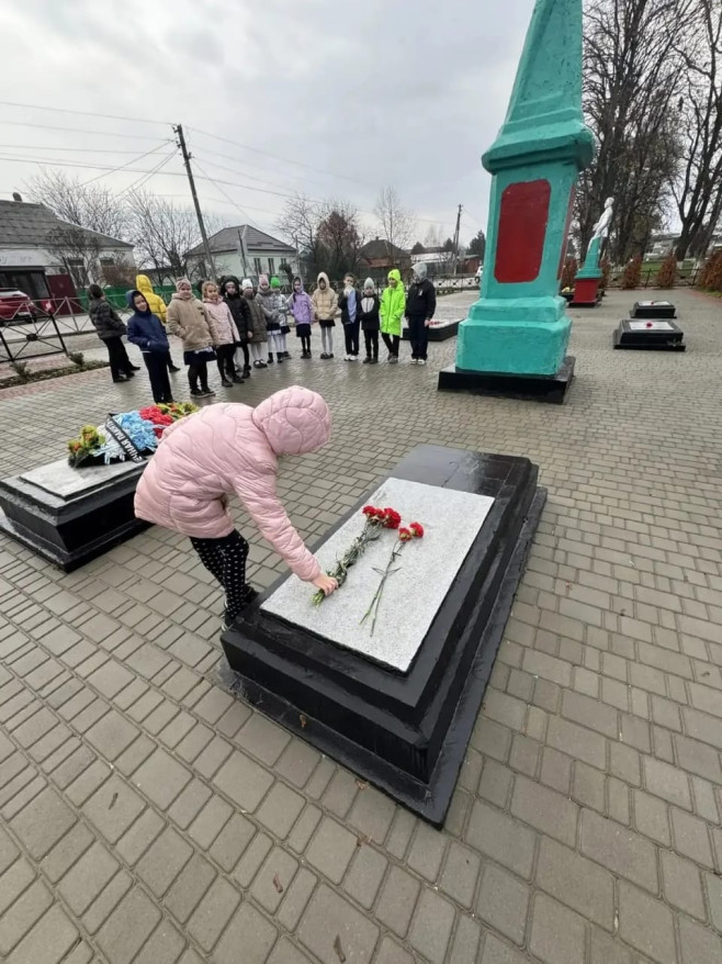 После линейки гости вместе с учащимися возложили цветы на братскую могилу.
