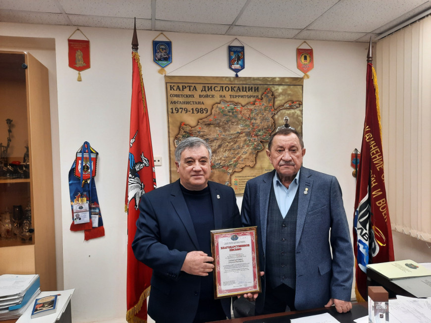 Анатолий Салихов вручил ветерану боевых действий в Афганистане Анатолию Скрибантовичу благодарственное письмо за систематическую работу по сохранению исторической памяти Отечества, значительный вклад в патриотическое воспитание молодёжи, поддержку участников и ветеранов боевых действий, социальную заботу о членах семей ветеранов.