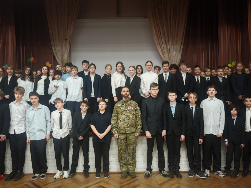 27 ноября в гимназии №42 Приморского района Санкт-Петербурга прошёл урок мужества для 7 классов, который провел ветеран “БОЕВОГО БРАТСТВА”, участник СВО Кирилл Мотовилов.