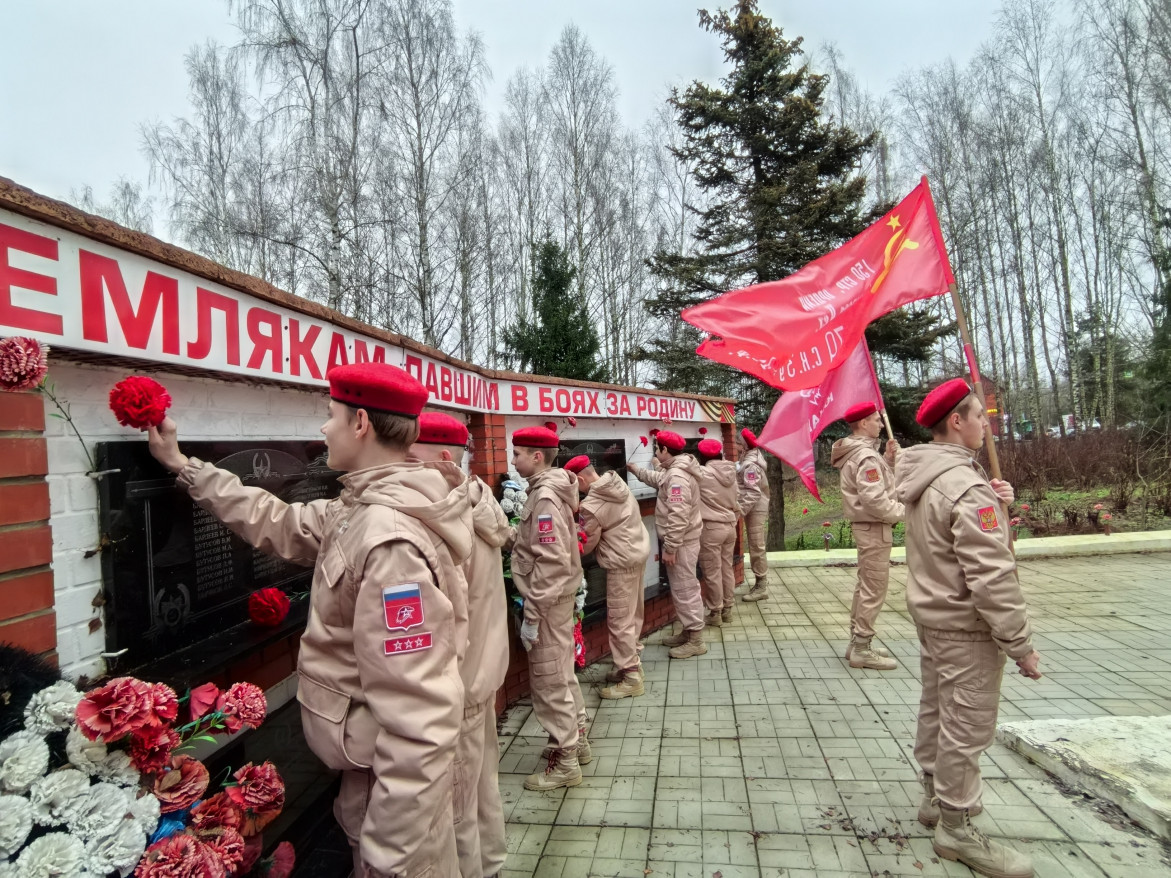 После линейки юнармейцы под руководством Елены Постновой возложили цветы к памятнику односельчанам в селе Куликово.
