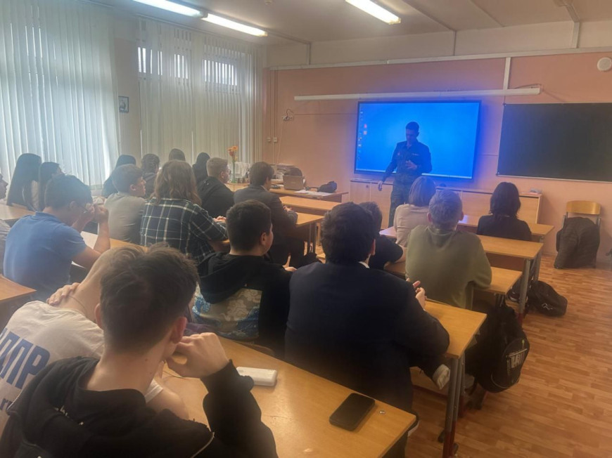 Роман Леденёв рассказ школьникам о своём боевом опыте, приобретённом в ходе специальной военной операции. Особое внимание ветеран уделил теме преемственности поколений и сохранении исторической памяти о ветеранах Великой Отечественной войны.