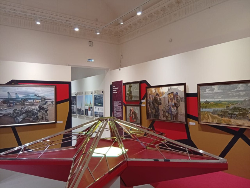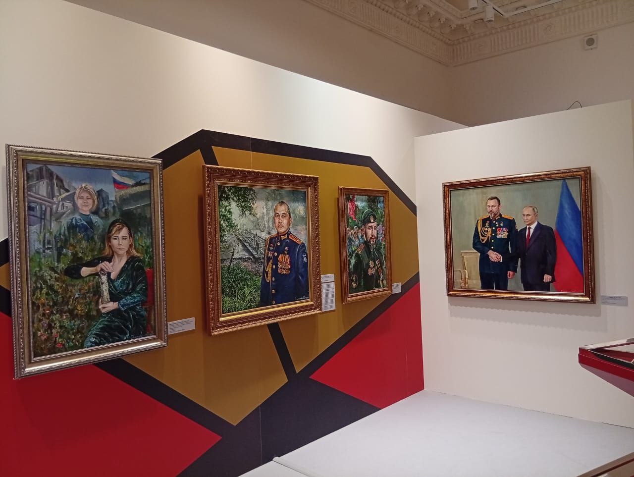 На картинах изображены президент России Владимир Путин, первый заместитель председателя «БОЕВОГО БРАТСТВА» Дмитрий Саблин, Герои России, участники Специальной военной операции.