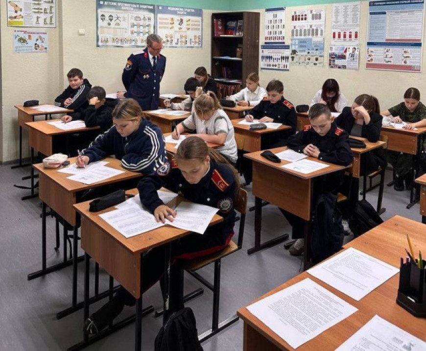 Ребята в очном формате отвечали на вопросы теста по истории России и российского казачества. Результаты станут известны по окончании акции, которая продлится до 6 декабря на платформе казачийдиктант.рф.