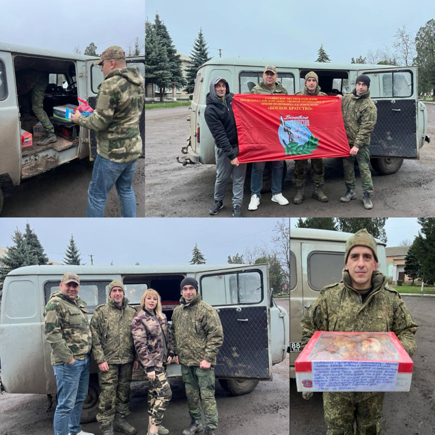 6 декабря члены Славянского местного отделения Всероссийской общественной организации ветеранов «БОЕВОЕ БРАТСТВО» имени полковника Александра Пантелеева, Татьяна Дацко и Денис Глыбин вместе с гражданскими активистами Сергеем Тараном, Анатолием Кузьминых и Ольгой Бобырь доставили гуманитарную помощь военнослужащим на донецкое направление, в Марьяновку.