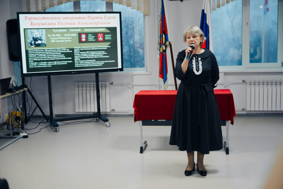 5 декабря член правления Щёлковского районного отделения «БОЕВОГО БРАТСТВА» Сергей Кокорев, участник Специальной военной операции, принял участие в открытии «Парты героя» Евгения Кукушкина, погибшему в зоне Специальной военной операции.