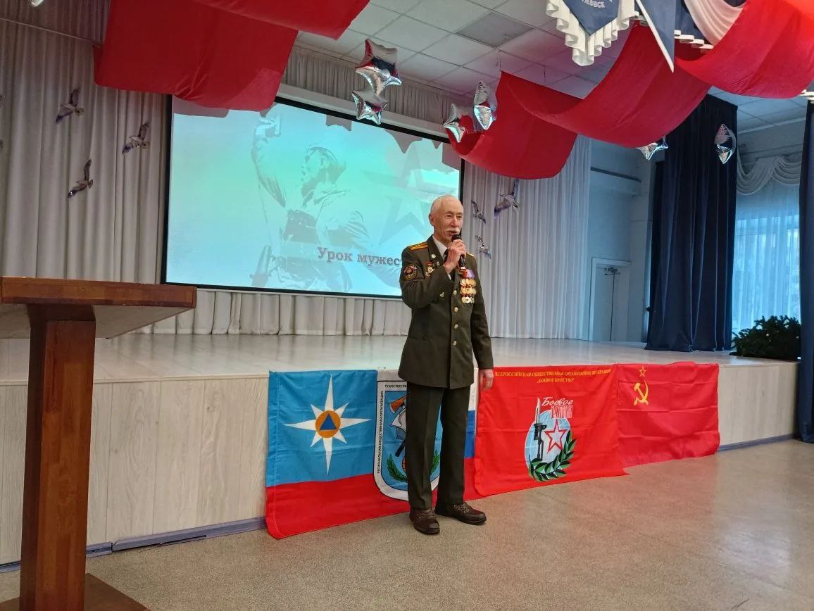 Ветераны рассказали учащимся о подвигах героев Отечественной войны и современных защитниках — участниках Специальной военной операции. Особое внимание уделялось значению личной ответственности, памяти о подвиге защитников и необходимости духовно‑нравственного становления молодёжи.