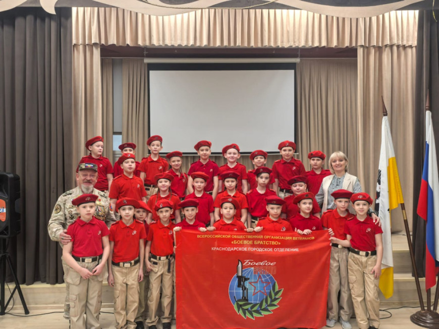 После взял слово начальник штаба Карасунского отделения Краснодарского «БОЕВОГО БРАТСТВА» майор Владимир Топчий. Он говорил о значении героизма, ответственности перед Родиной и важности сохранения исторической памяти: «Герой — это не обязательно тот, кто совершает подвиг на поле боя. Герой — это тот, кто каждый день честно выполняет свой долг, будь то учёба, работа или служба. Будьте героями в своей повседневной жизни!»