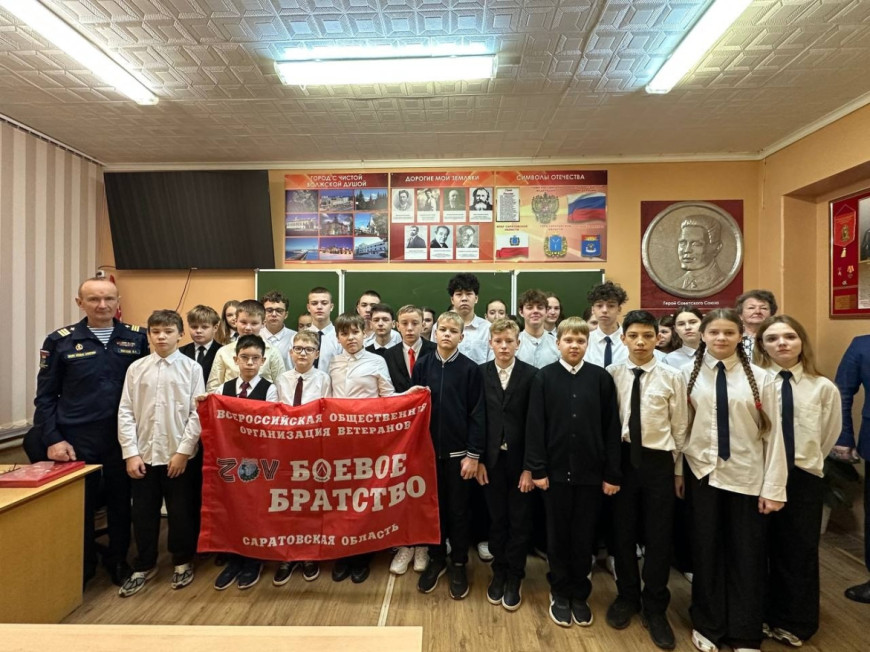 5 декабря в балаковской гимназия №1 прошел урок мужества с участием заместителя председателя правления Балаковского районного отделения «БОЕВОГО БРАТСТВА» имени Вячеслава Малярова Пикеевым Виталием для учащихся 6В и 9Б классов.